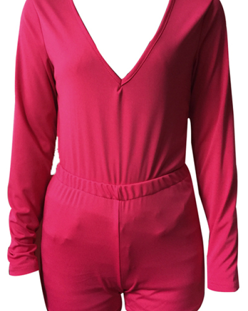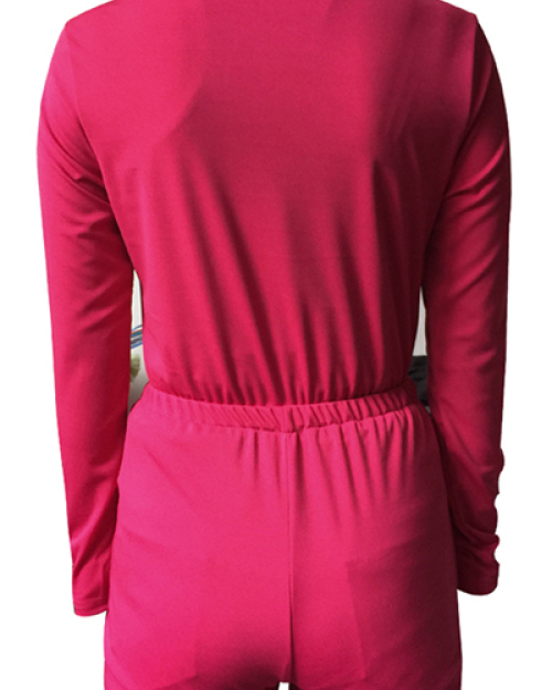 Fashion O Neck Long Sleeves High Waist Red Polyester Skinny Jumpsuit(Without Accessories)