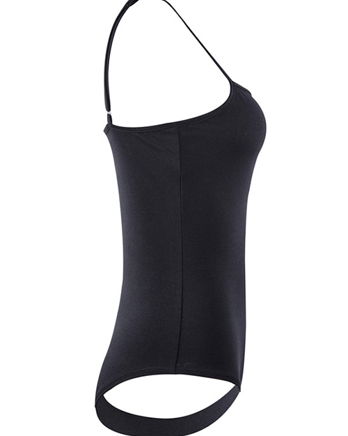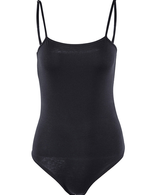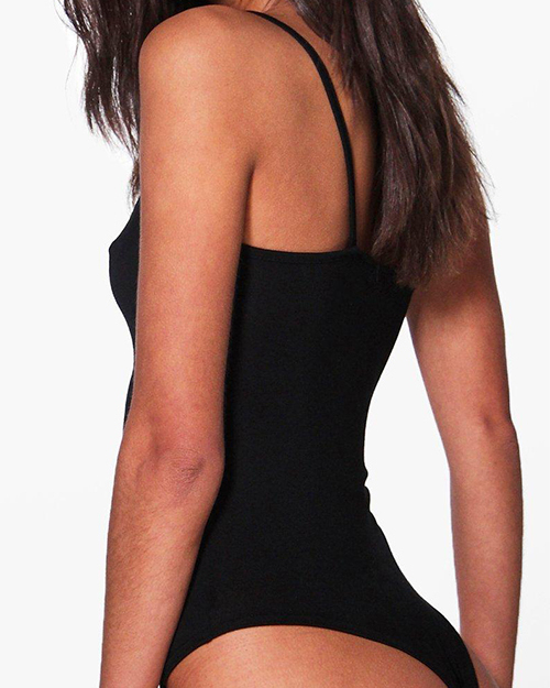 Fashion Spaghetti Strap Sleeveless Black Cotton Blends One-piece Bodysuits