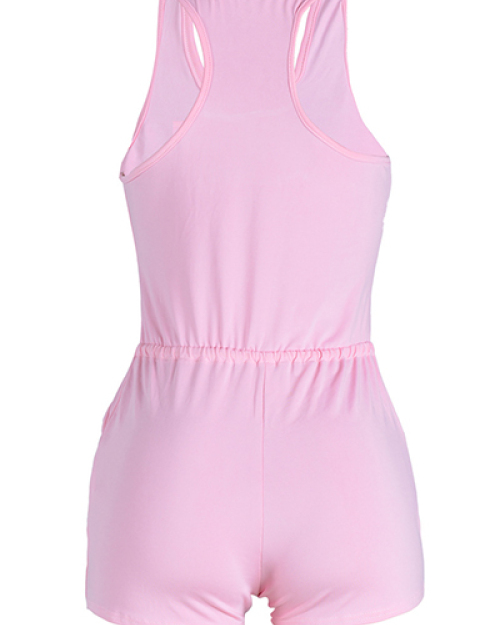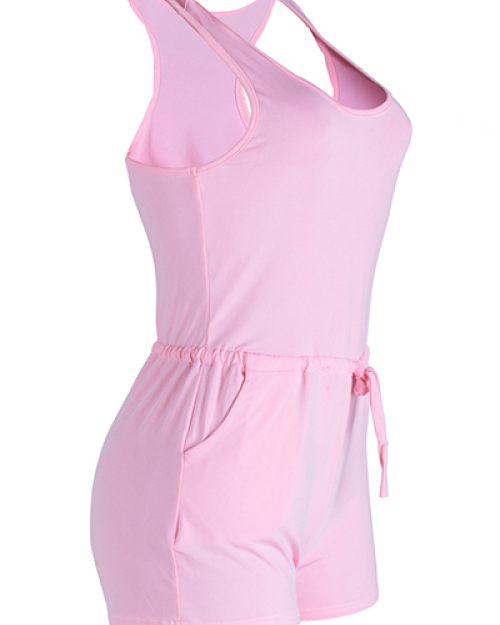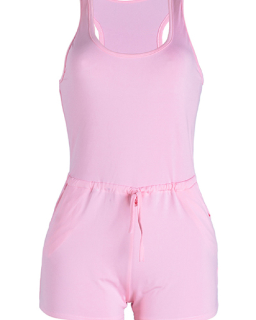 Leisure U-shaped Neck Drawstring Design Pink Qmilch One-piece Skinny Jumpsuits
