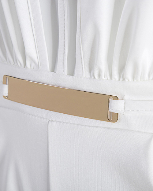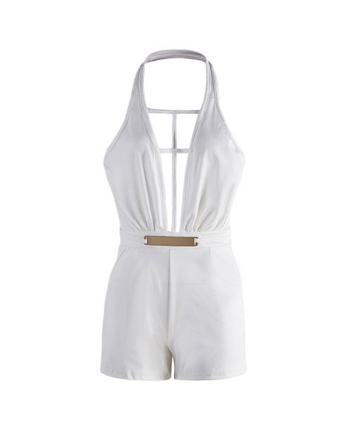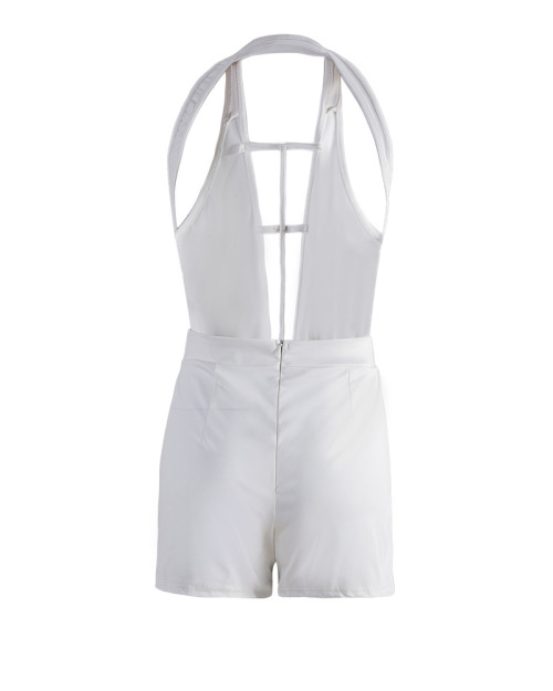 Sexy Deep V Neck Sleeveless Backless White Healthy Fabric One-piece Jumpsuits