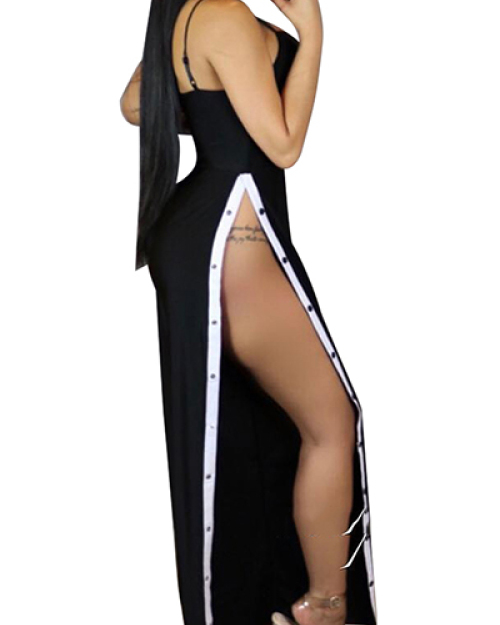 Sexy High Split Black Twilled One-piece Jumpsuits