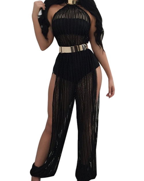 Sexy Hollow-out Black Lace One-piece Skinny Jumpsuits(Without Choker And Belt)