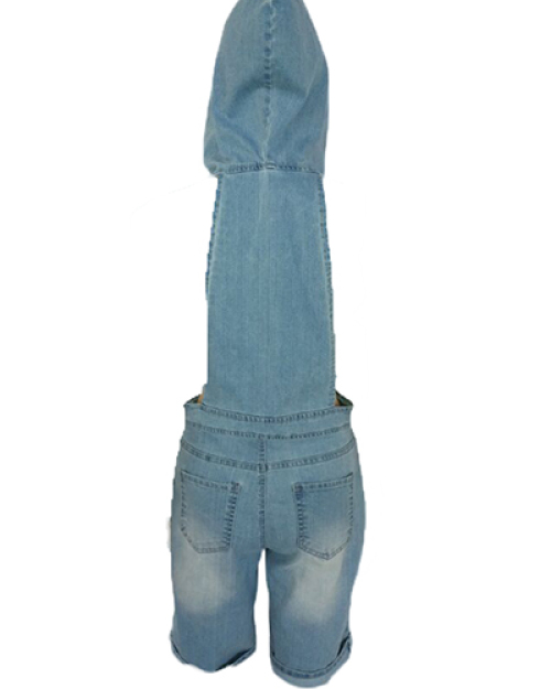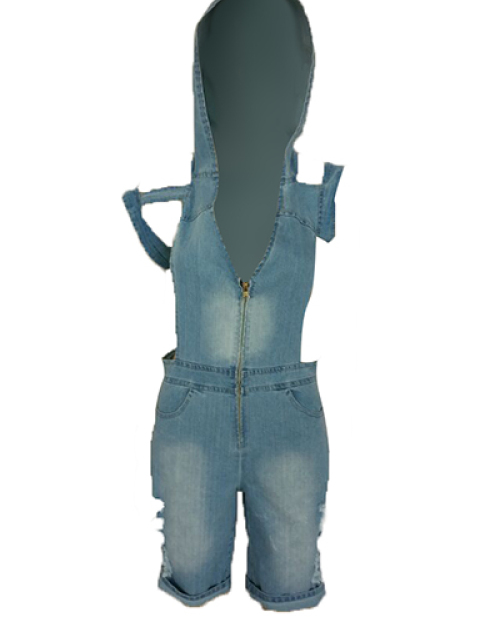 Sexy Hooded Collar Short Sleeves Hollow-out Blue Denim One-piece Loose Jumpsuits