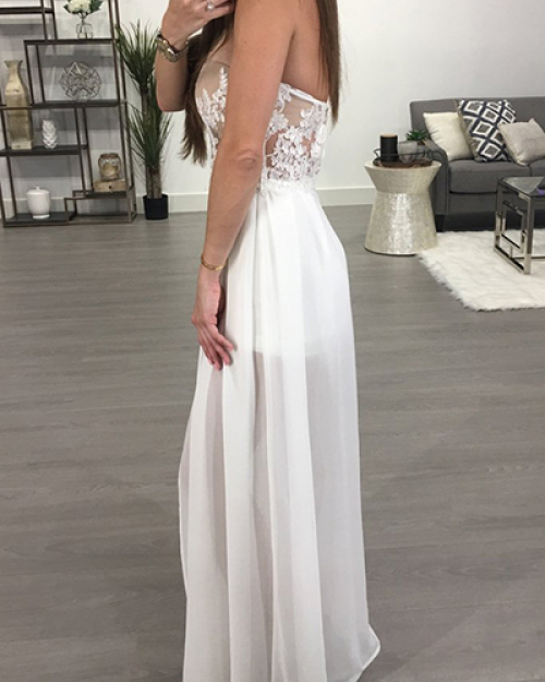 Sexy See-Through Backless White Chiffon One-piece Jumpsuits