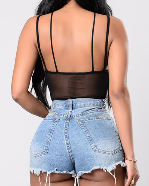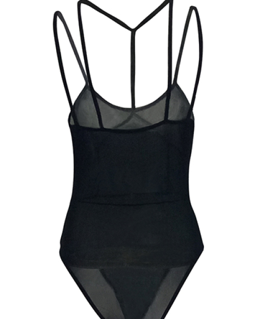 Sexy See-Through Black Gauze One-piece Skinny Jumpsuits