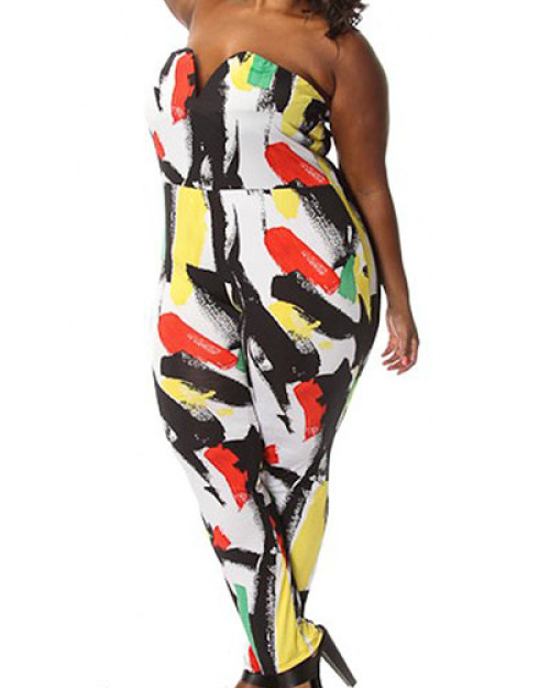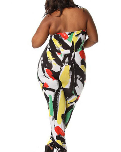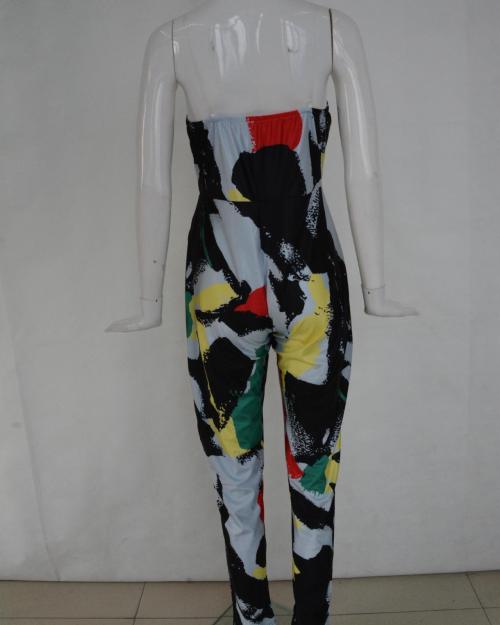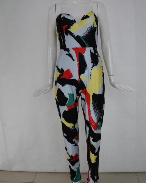 Sexy Strapless Sleeveless Multi-colored Print Polyester One-piece Regular Jumpsuit