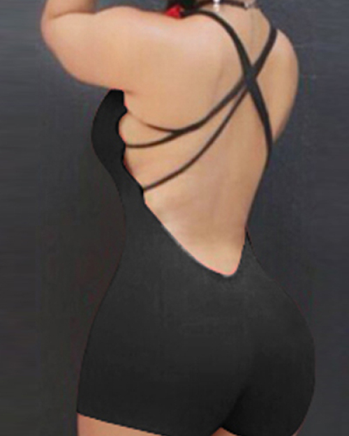 Sexy U-shaped Neck Backless Black Qmilch One-piece Skinny Jumpsuits
