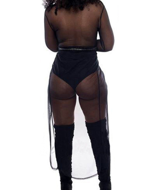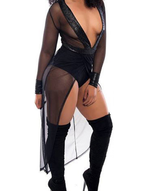 Sexy V Neck Long Sleeves Mesh Patchwork Black One-piece Skinny Jumpsuits