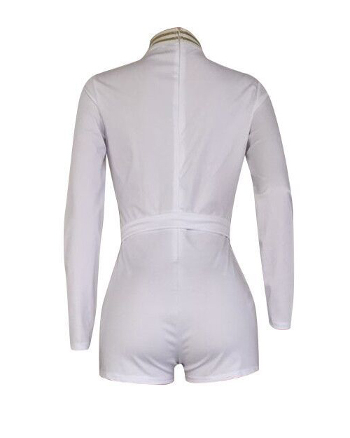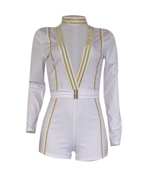 Stylish Deep V Neck Patchwork White Cotton Blends One-piece Short Jumpsuits
