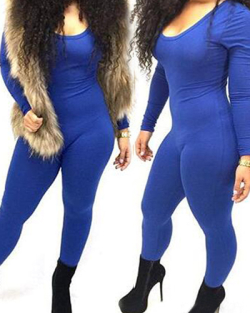 Stylish O Neck Long Sleeves Royalblue Qmilch One-piece Skinny Jumpsuit
