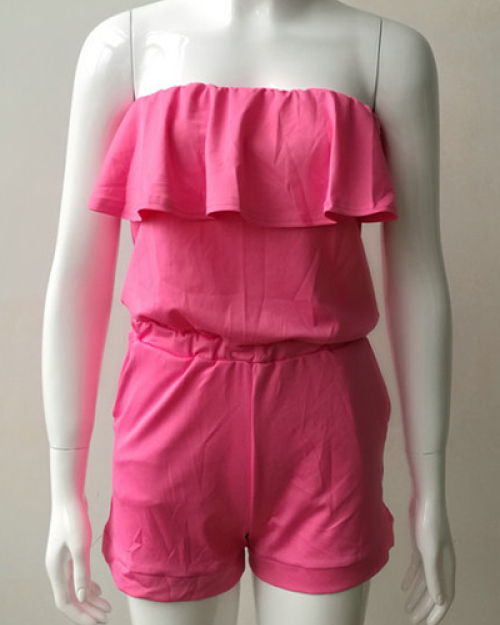 Stylish Strapless Falbala Design Polyester One-piece Jumpsuits