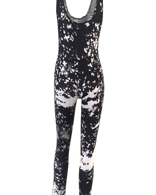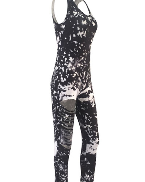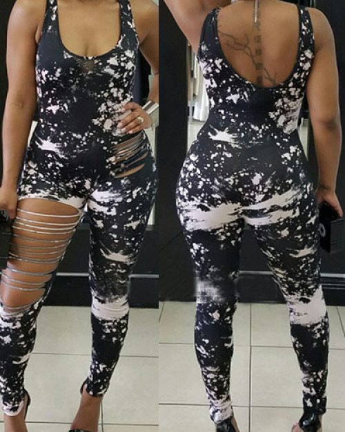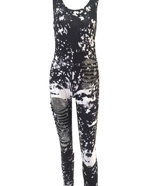 Stylish U-shaped Neck Sleeveless Printed Broken Holes Qmilch One-piece Skinny Jumpsuits