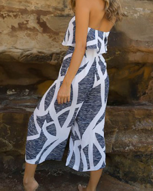 Trendy Dew Shoulder Falbala Design Cotton One-piece Jumpsuits