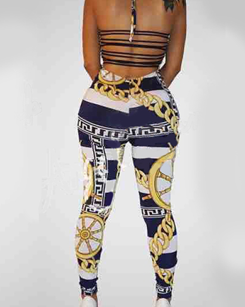 Trendy Round Neck Sleeveless Chain Printed Qmilch One-piece Jumpsuits