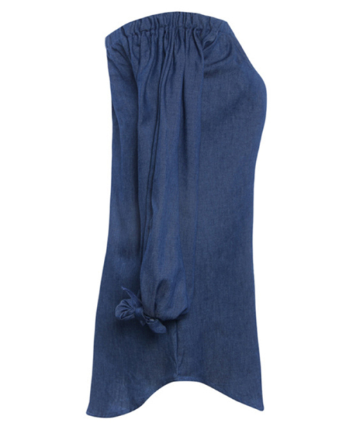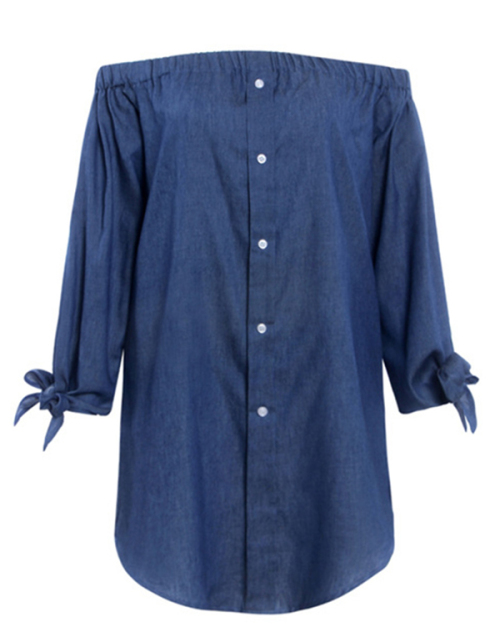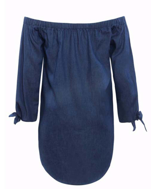 Leisure Bateau Neck Knot Design Deep Blue Denim Mini Dress