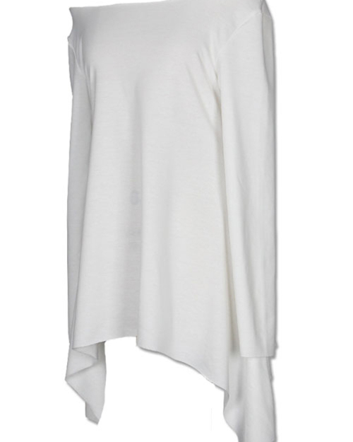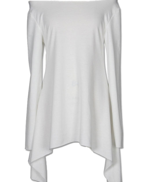 Leisure Dew Shoulder Asymmetrical White Polyester Mid Calf Dress