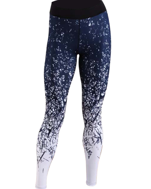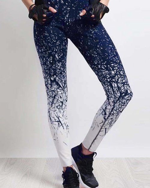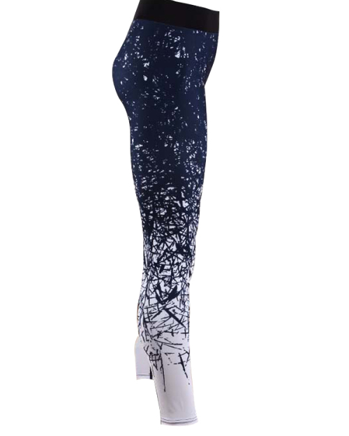 Leisure Elastic Waist Printed Blue Polyester Leggings