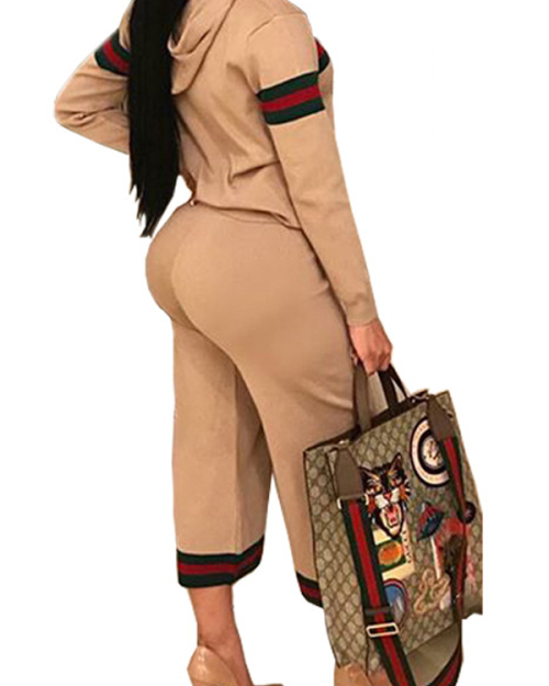 Leisure Hooded Collar Patchwork Pink Cotton Two-piece Pants Set