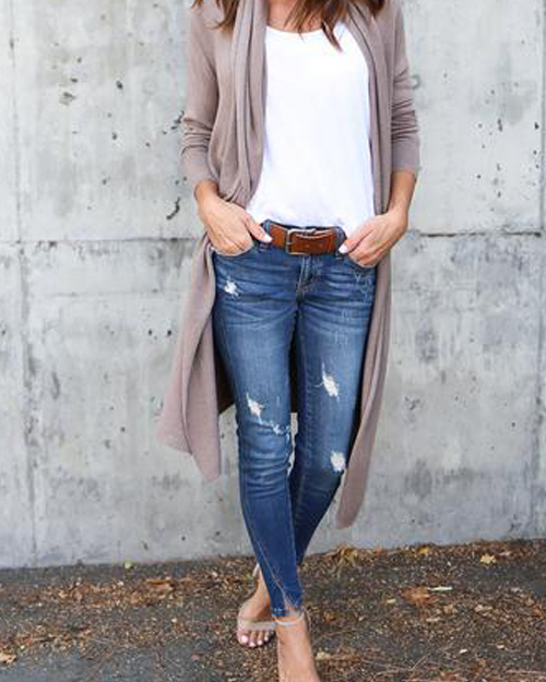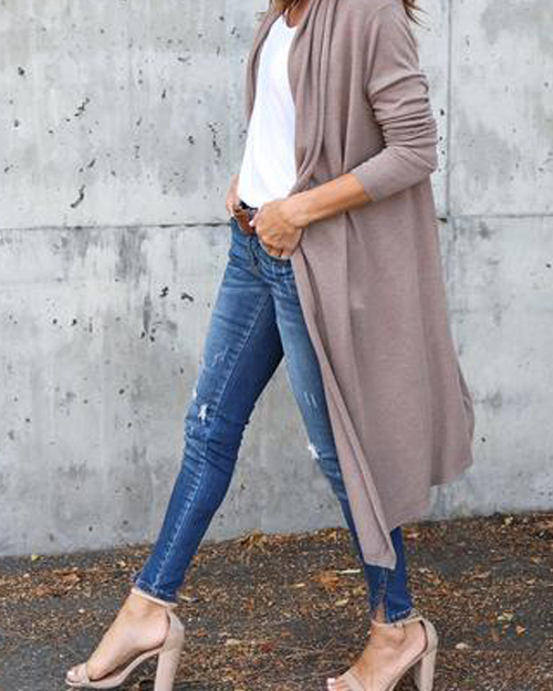 Leisure Long Sleeves Light Gray Cotton Cardigans