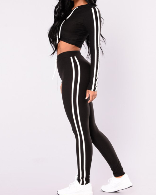 Leisure Long Sleeves Patchwork Black Polyester Two-piece Pants Set