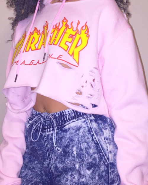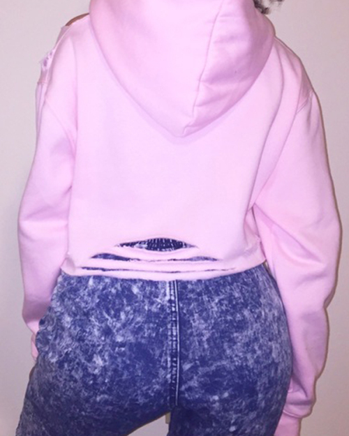 Leisure Long Sleeves Printed Hollow-out Pink Cotton Blends Hoodies