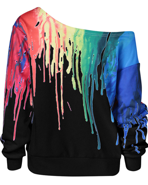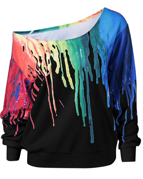 Leisure One-shoulder Asymmetrical Black Cotton Blends Pullovers