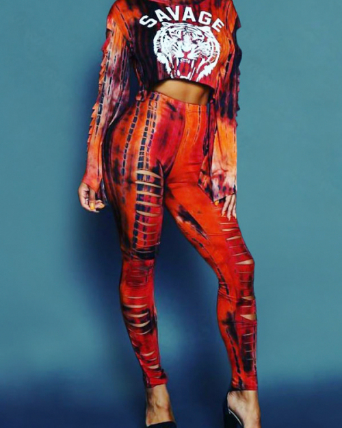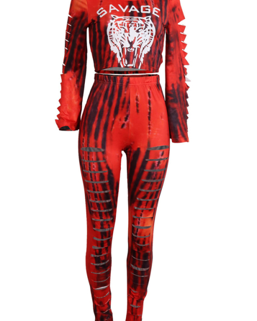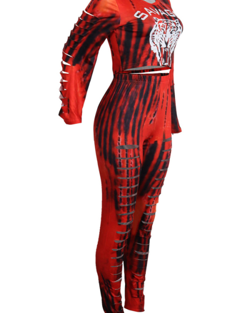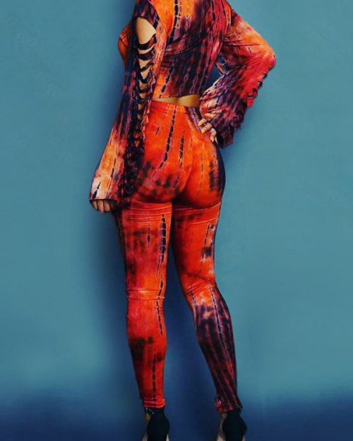 Leisure Round Neck Hollow-out Blending Two-piece Pants Set