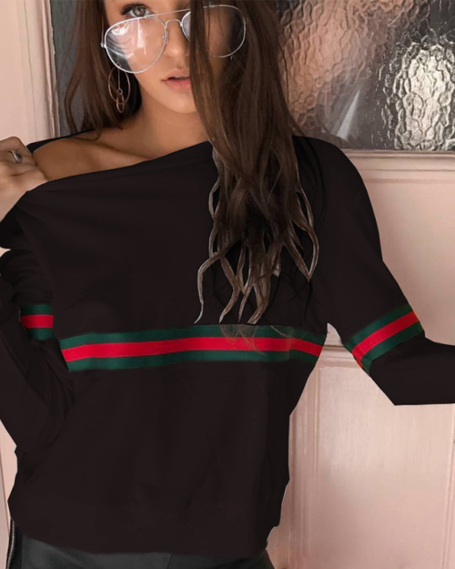 Leisure Round Neck Patchwork Black Polyester Pullovers