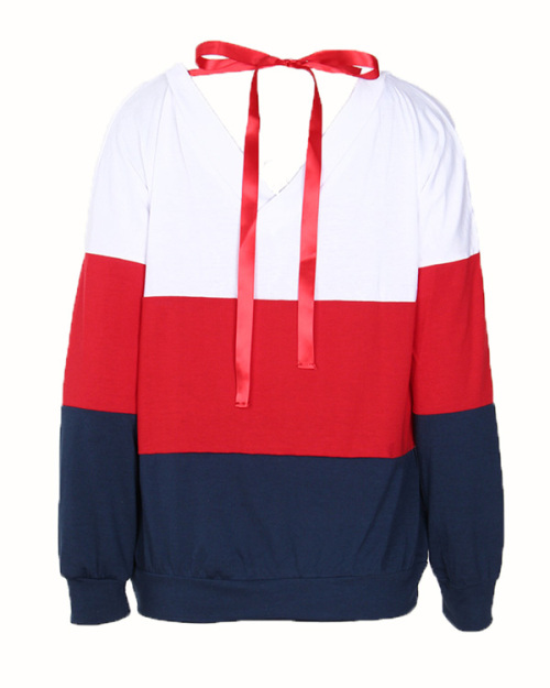 Leisure Round Neck Patchwork Red Cotton Blends Tops