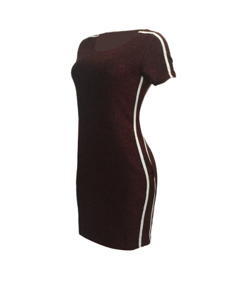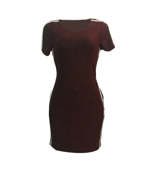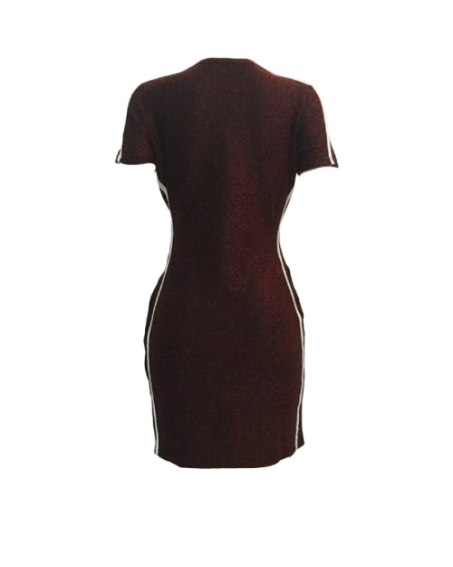 Leisure Round Neck Patchwork Wine Red Polyester Sheath Mini Dress