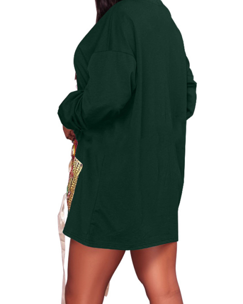Leisure Round Neck Printed Green Cotton Mini Dress
