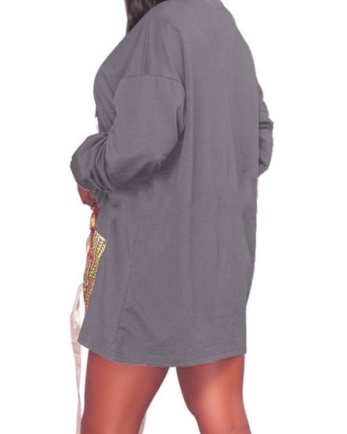 Leisure Round Neck Printed Grey Cotton Mini Dress