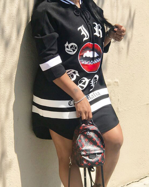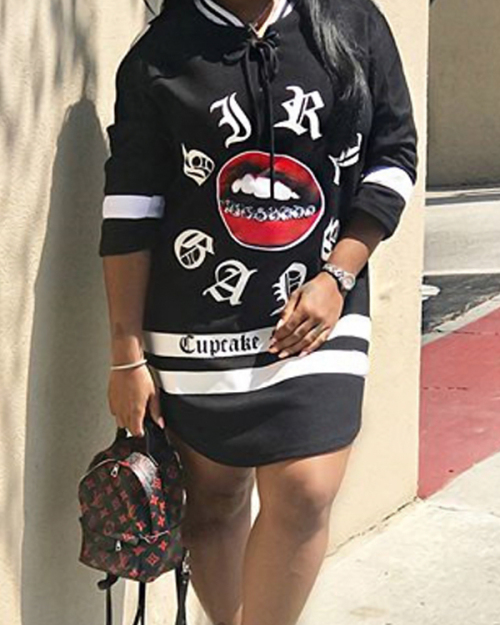 Leisure V Neck Printed Black Polyester Knee Length Dress