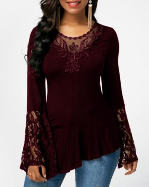 Euramerican Bateau Neck Lace-up Wine Red Polyester One-piece Jumpsuits
