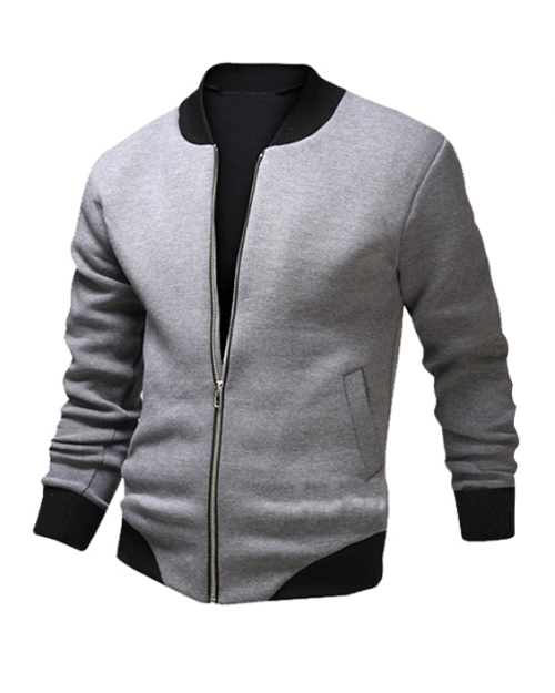 Euramerican Round Neck Long Sleeves Patchwork Zipper Design Light Grey Cotton Blends Jacket