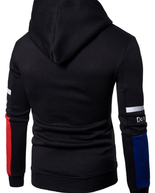 Fashionable Hooded Collar Patchwork Black Cotton Blends Hoodies