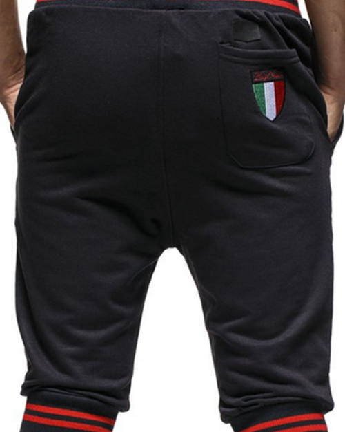 Leisure Elastic Waist Letters Printing Black Cotton Blends Shorts