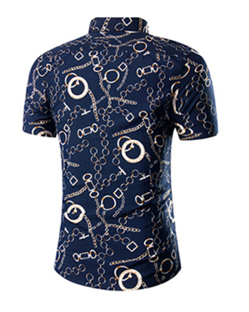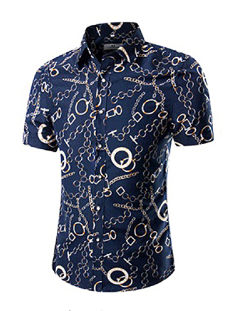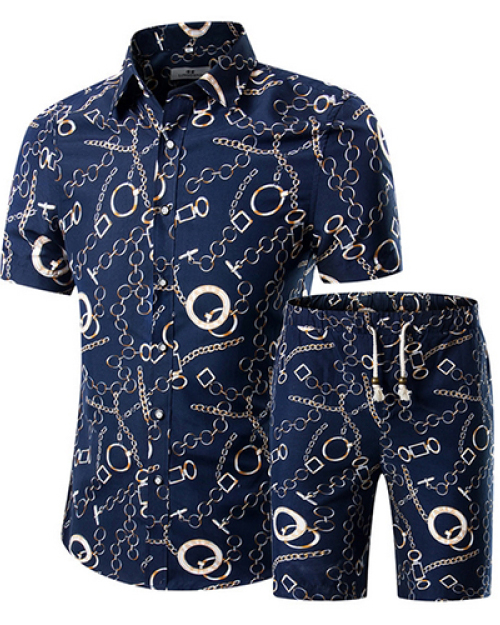 Stylish Mandarin Collar Short Sleeves Printed Blue Cotton Blends Two-piece Shorts Set