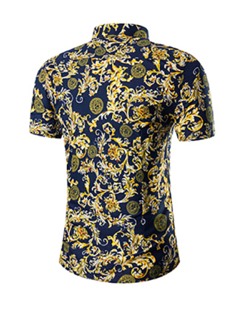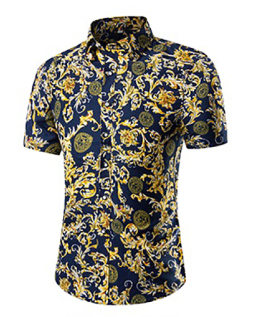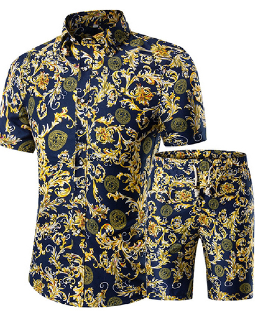 Stylish Mandarin Collar Short Sleeves Printed Yellow Cotton Blends Two-piece Shorts Set
