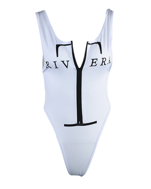 Sexy Letters Printed White Milk Wire One-piece Swimwear