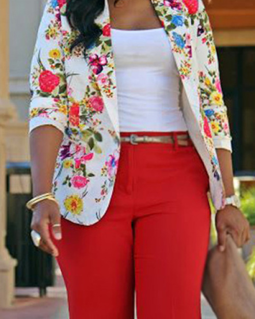 Stylish Turndown Collar Long Sleeves Floral Print Healthy Fabric Blazer