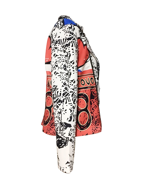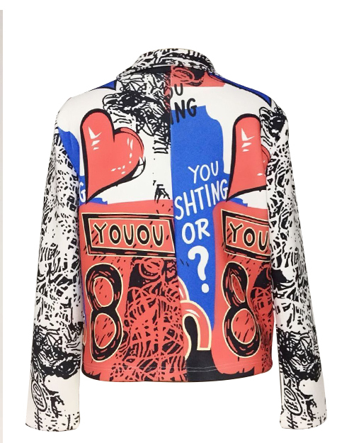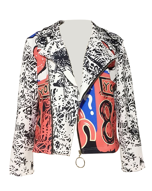 Chic Turndown Collar Long Sleeves Printed Polyester Zipped Coat