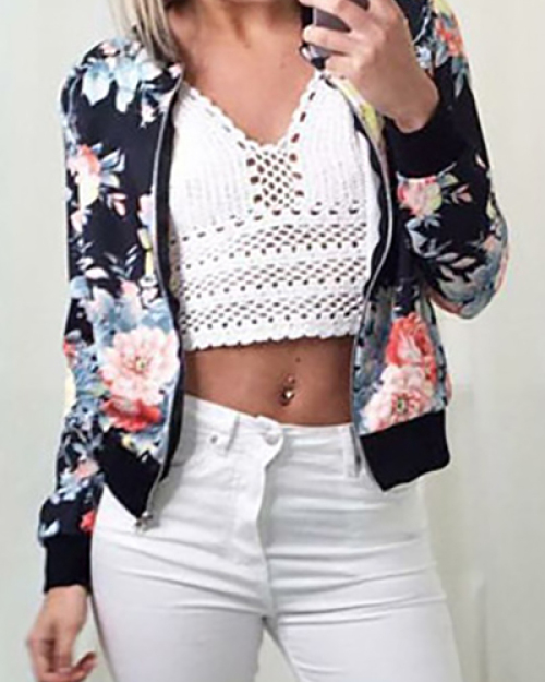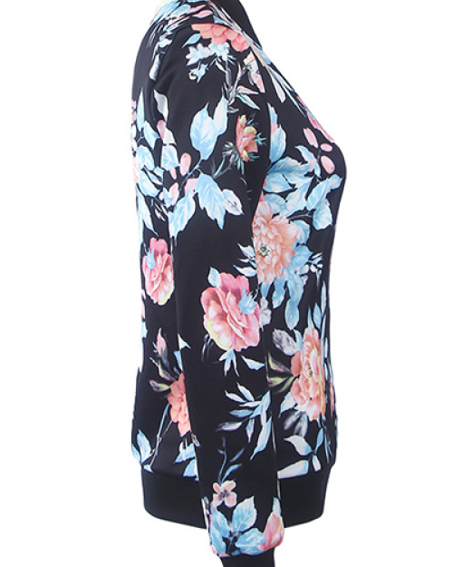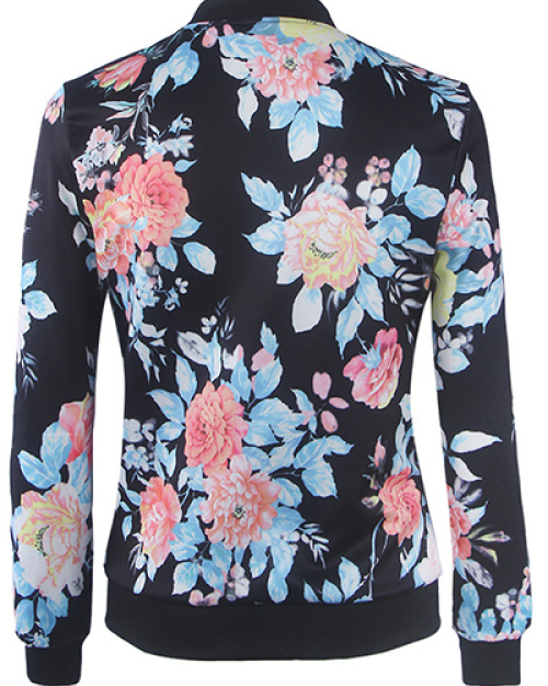 Ethnic Style Round Neck Long Sleeves Printed Black Polyester Coats
