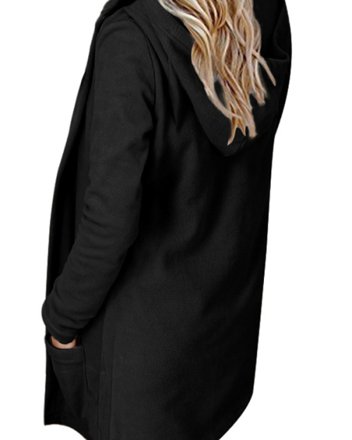 Euramerican Hooded Collar Long Sleeves Black Polyester Long Coat