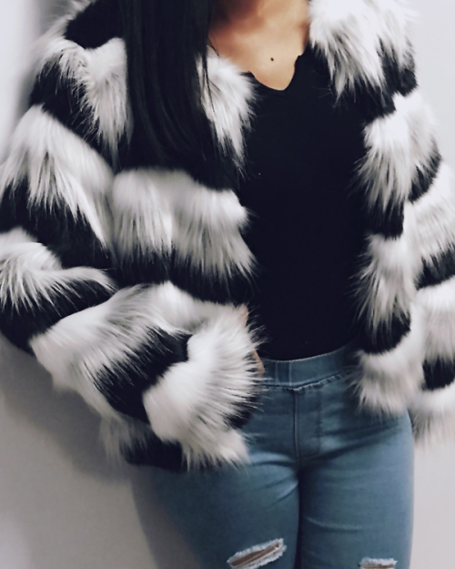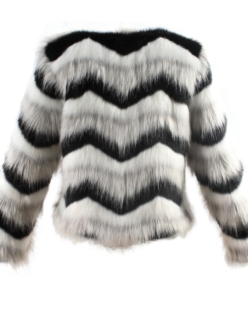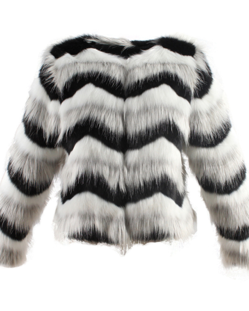 Euramerican Round Neck Ruched Faux Fur Coat