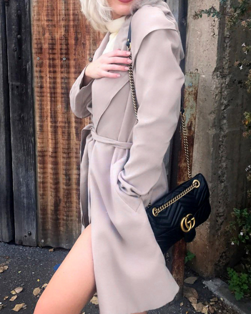 Euramerican Turndown Collar Long Sleeves Lace-up Pink Cotton Long Coat
