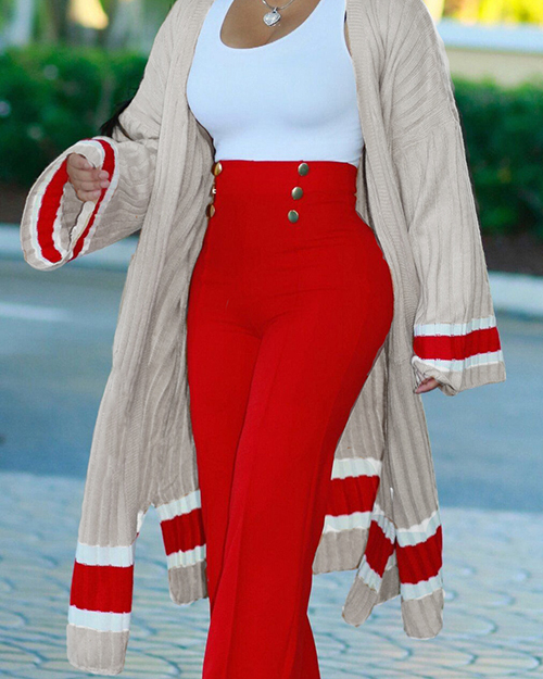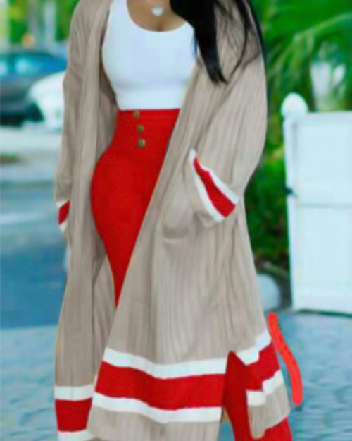 Stylish V Neck Patchwork Apricot Polyester Long Coat