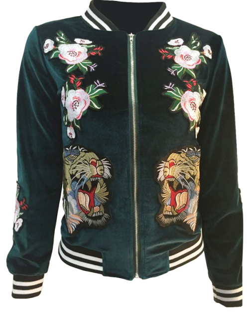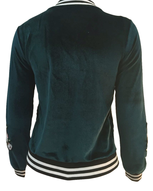 Trendy Round Neck Embroidered Design Green Velvet Coat