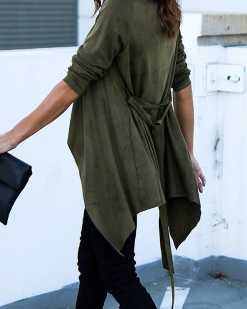 Trendy Turndown Collar Asymmetrical Army Green Blending Coat