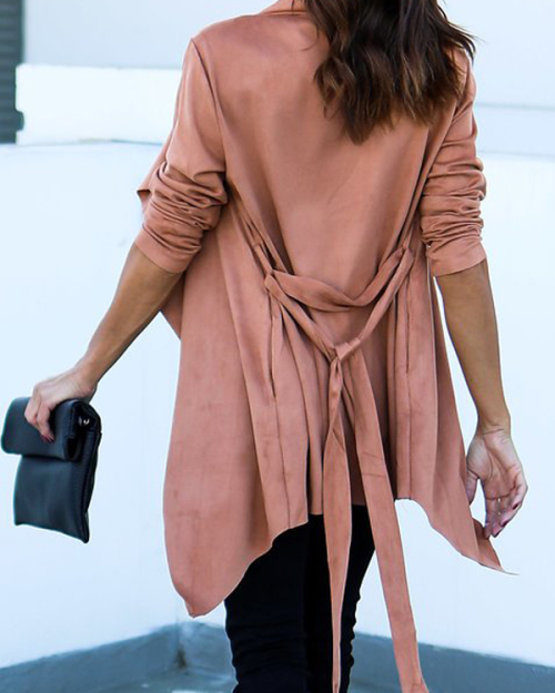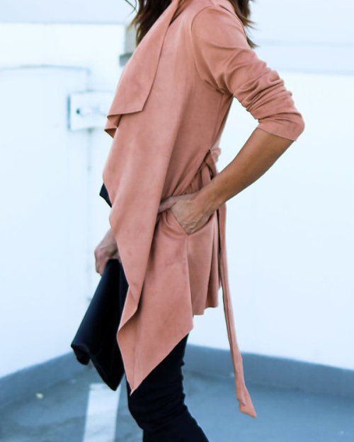 Trendy Turndown Collar Asymmetrical Pink Blending Coat